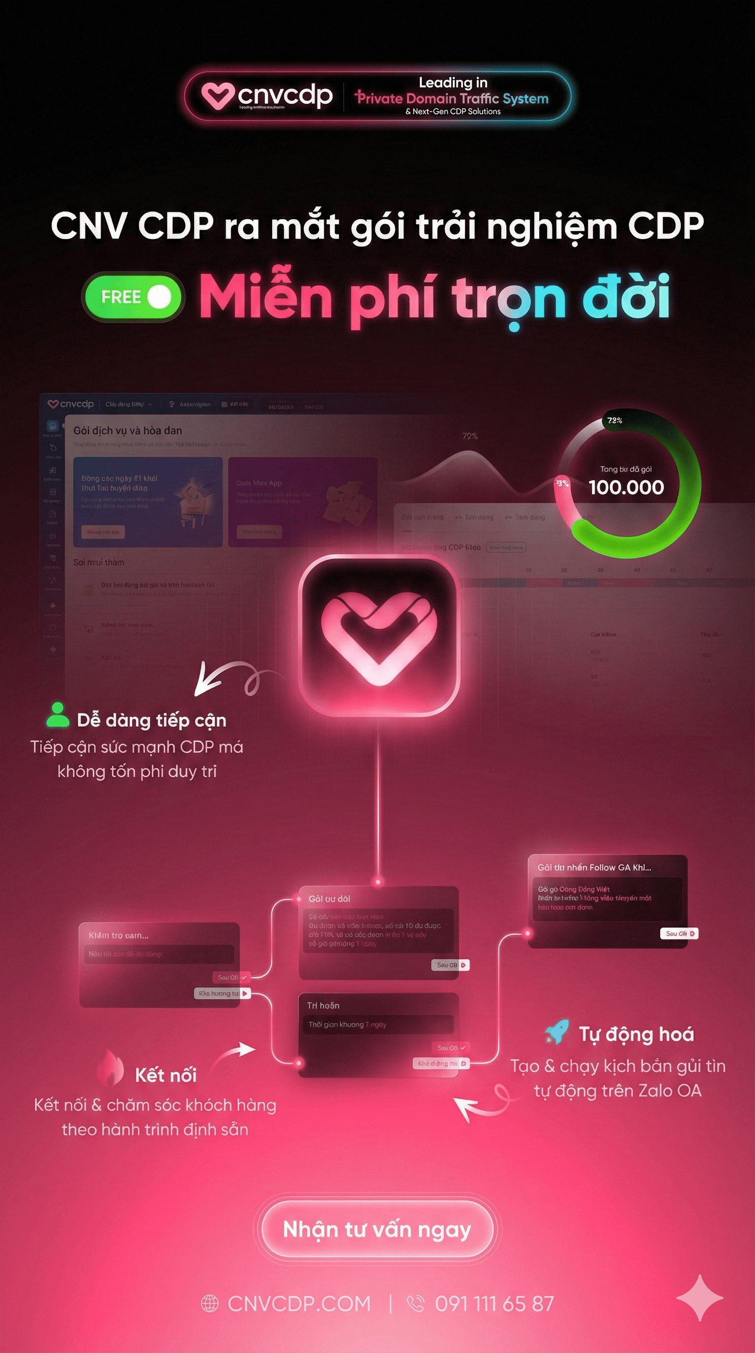 Mong rằng qua bài viết trên, bạn đã hiểu rõ khái niệm CDP là gì và những ưu điểm của nó so với các nền tảng khác. Với CNV CDP, việc quản lý dữ liệu khách hàng và việc tối ưu hóa chiến lược tiếp thị trở nên dễ dàng hơn bao giờ hết. Sử dụng CNV CDP đồng nghĩa với việc bạn đang tận dụng tối đa khả năng Marketing Automation để phục vụ khách hàng của mình một cách tốt nhất. Nếu bạn cần thêm hỗ trợ hoặc tư vấn chi tiết hơn, đừng ngần ngại liên hệ với CNV – Nền tảng tăng trưởng bền vững và khai thác toàn diện sức mạnh dữ liệu qua số 1900 636 400 để được tư vấn miễn phí.——————————